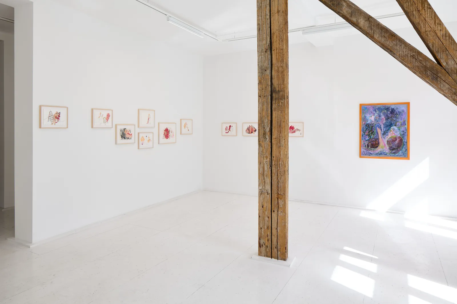Intestine disorder is a condition largely caused by stress and anxiety, which Tirdad Hashemi has experienced since childhood. As a transgender person, Hashemi has long focused on studying weakened, isolated, and reshaped bodies through their paintings. Drawing ill and malfunctioning intestines together with Soufia Erfanian, Hashemi’s partner, becomes a tender form of care within their relationship.